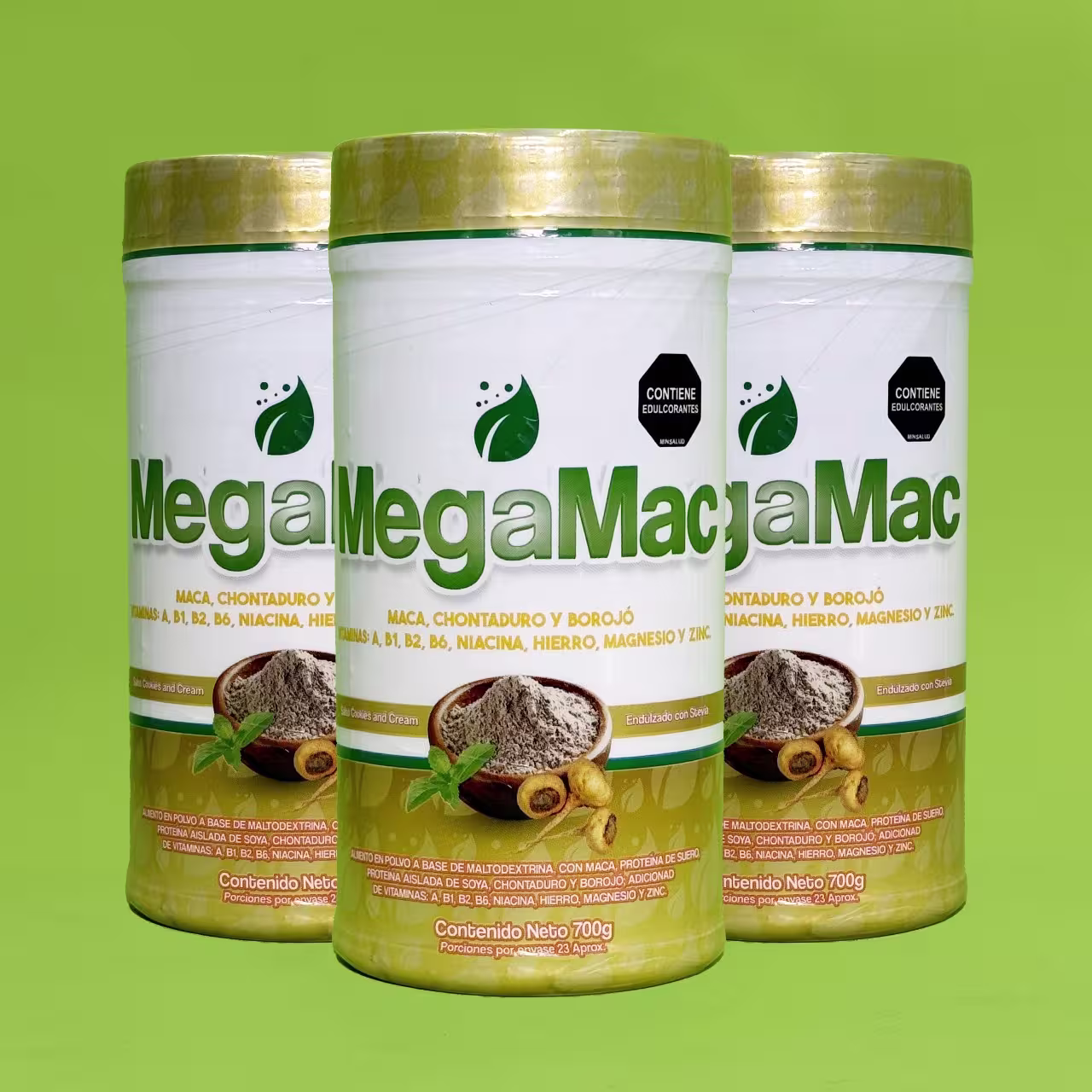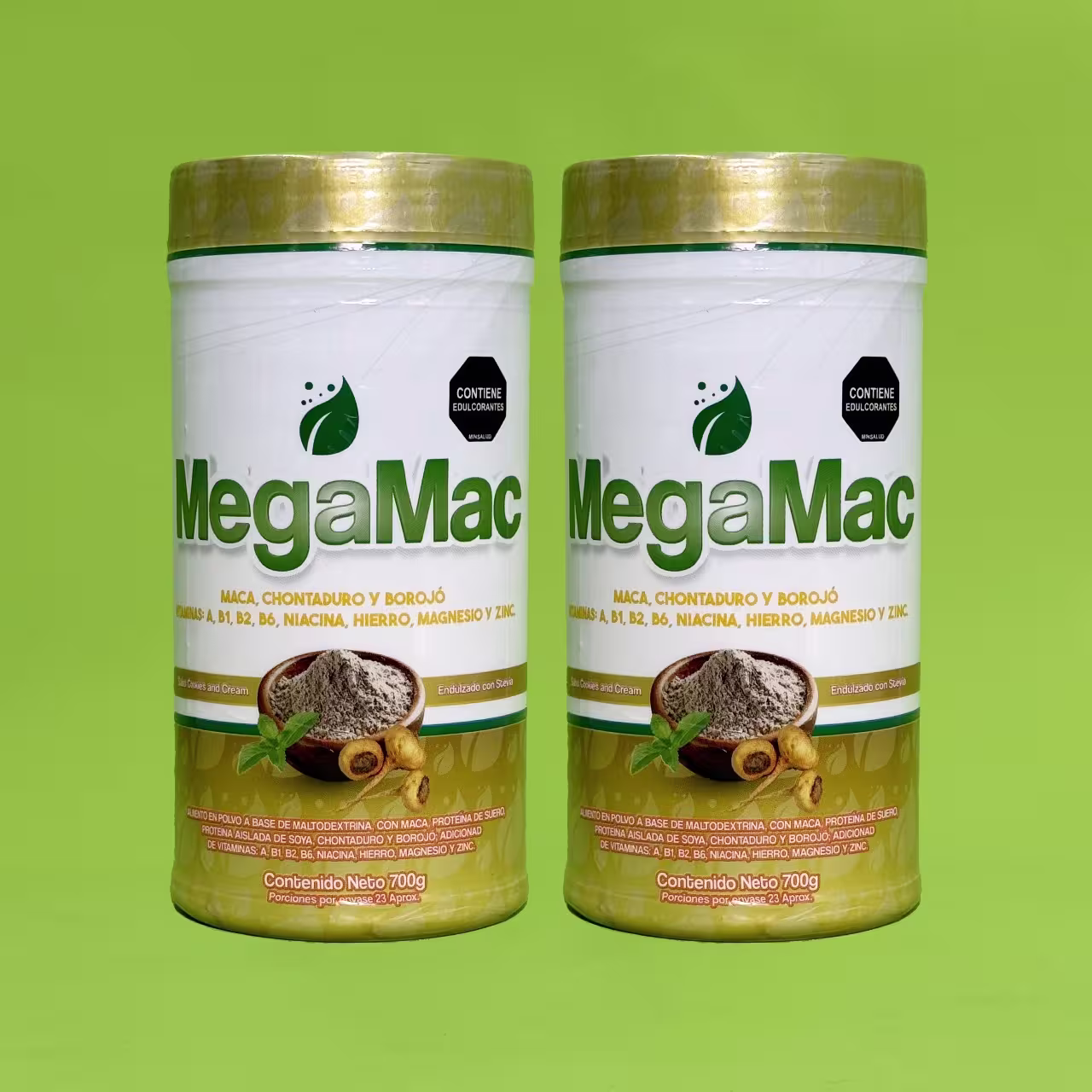 MEGAMAC es un alimento energético natural formulado con una combinación de maca, chontaduro, borojó y proteínas de alta calidad que contribuyen al aumento de energía física, el fortalecimiento del sistema inmune y la mejora del rendimiento sexual y mental.